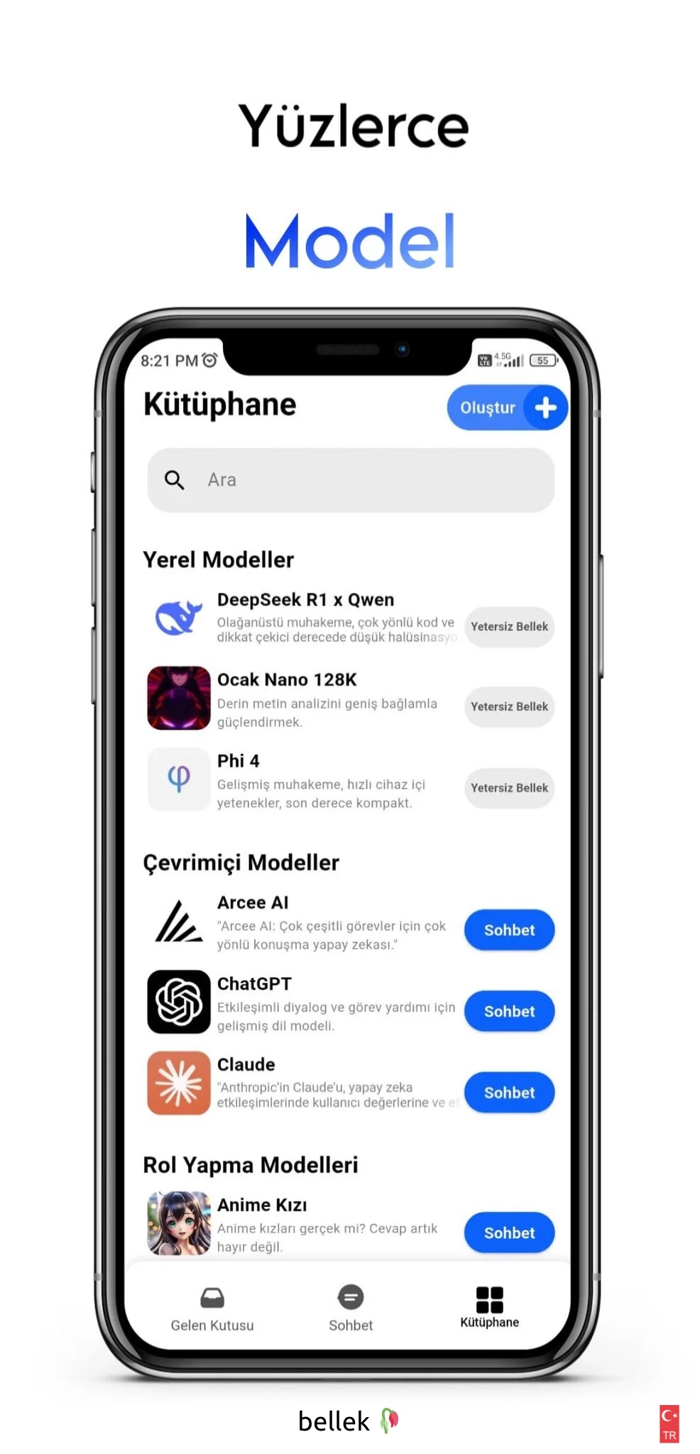 - kendi modelini getir: sizi sınırlamak da istemiyoruz, elinizde bir gguf dosyası varsa doğrudan içe aktarabilir ve yerel olarak çalıştırabilirsiniz.